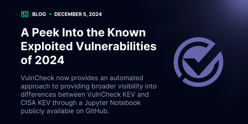 - VulnCheck now provides an automated approach to providing broader visibility into differences between VulnCheck KEV and CISA KEV through a Jupyter Notebook publicly available on GitHub.
