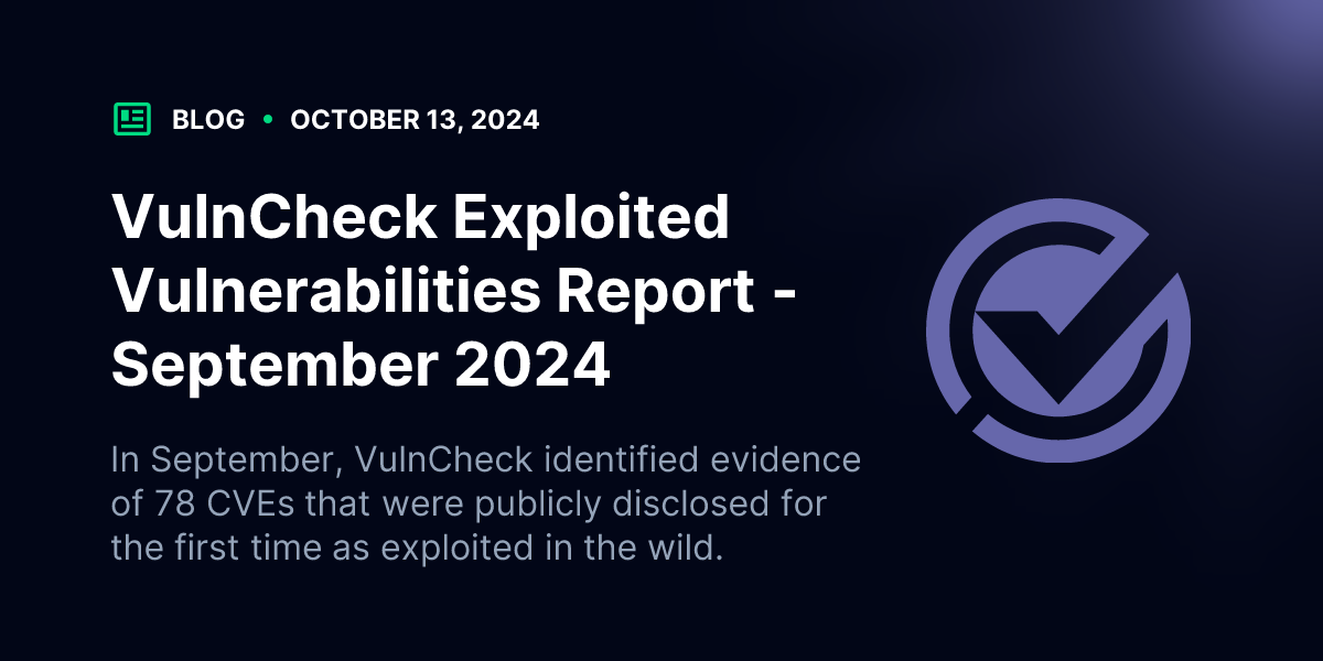 - In September, VulnCheck identified 78 CVEs that were publicly disclosed for the first time as exploited in the wild