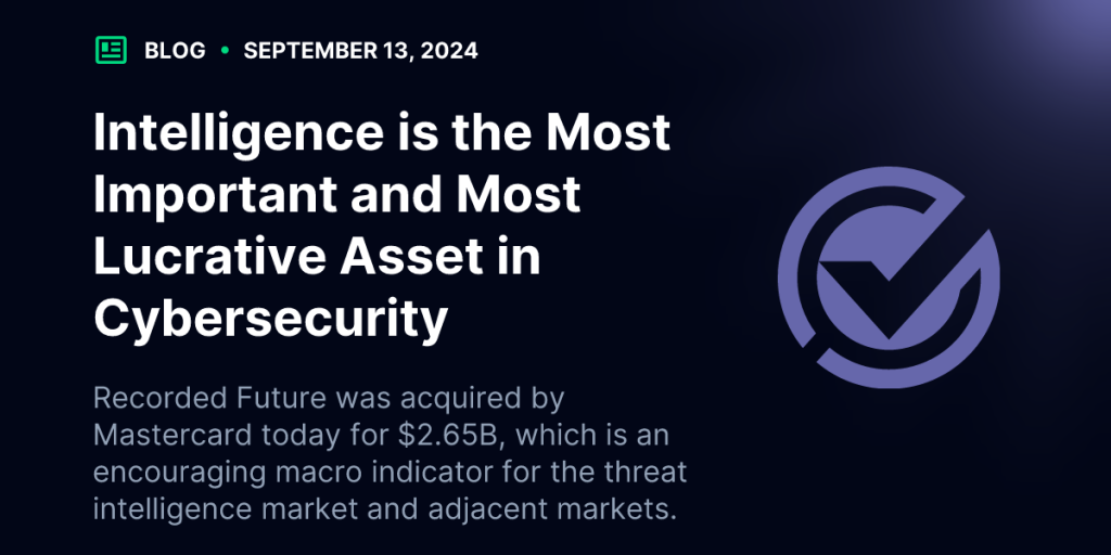 Recorded Future was acquired by Mastercard yesterday for $2.65B, which is an encouraging macro indicator for the threat intelligence market and adjacent markets. Mastercard has plucked off acquisition targets in the broader cyber space in a pragmatic way to maintain competitive advantage vs Visa and others.
