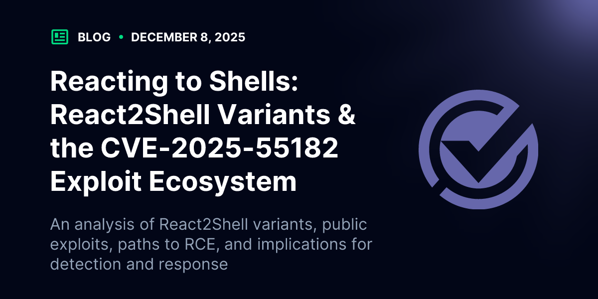 VulnCheck’s research team tracks real-world exploitation, attacker infrastructure, and exploit workflows using our Canary Intelligence, Exploit & Vulnerability Intelligence (EVI), and IP Intelligence datasets. Additional insight into React2Shell exploitation, PoCs, and payloads can be found in the following blogs: Reacting to Shells: React2Shell Variants & the CVE-2025-55182 Exploit Ecosystem, React2Shell and What Our Canaries See, and React2Shell Exploits on GitHub.