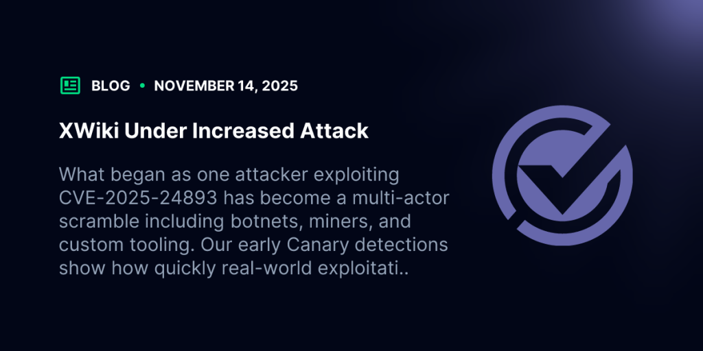 On October 28, we published XWiki CVE-2025-24893 Exploited in the Wild detailing an attacker abusing internet-exposed XWiki servers. Two days later, on October 30, CVE-2025-24893 was added to CISA Known Exploited Vulnerabilities (KEV). Since then, we’ve observed a noticeable uptick in exploit attempts.