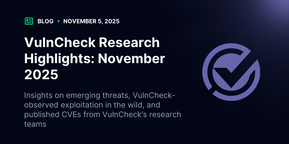 The VulnCheck research team is always on the lookout for new attack vectors and fresh vulnerability intelligence. For more research like this, see State of Exploitation: A Look Into 1H 2025 Vulnerability Exploitation and Threat Activity, VulnCheck Research Highlights: October 2025, and Still Up, Still Evil: A Look at Attacker Infrastructure Longevity.