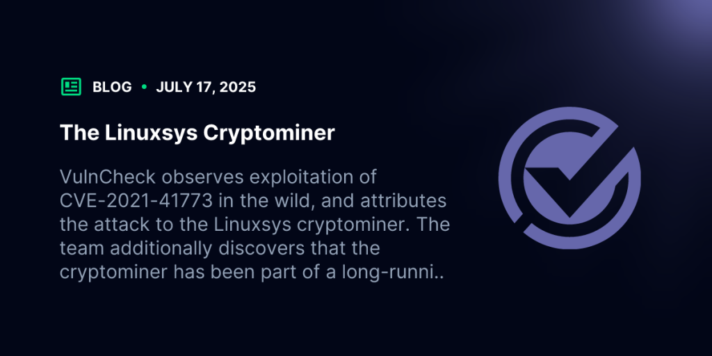 The Linuxsys cryptominer has been part of a long-running campaign exploiting multiple vulnerabilities with a consistent attacker methodology since at least 2021.