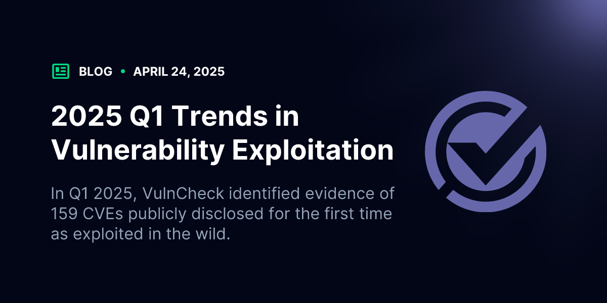 In Q1 2025, there were 159 vulnerabilities with publicly disclosed evidence of exploitation sourced from 50 different organizations. Notably, the data showed a long-tail distribution of these disclosures, a valuable trend for defenders seeking actionable threat intelligence.