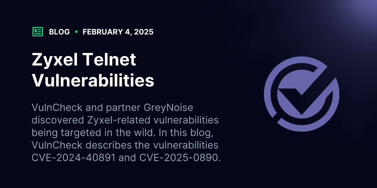 VulnCheck independently discovered vulnerabilities affecting Zyxel Customer Premises Equipment (CPE) after running into the hardware in the real world. The combination of the vulnerabilities allows for unauthenticated code execution via Telnet. A week ago, our friends at GreyNoise blogged about attackers actively using these vulnerabilities against their honeypot network, and the associated tag continues to flag ongoing activity. We believe, but have not received confirmation from the vendor, that at least the following Zyxel CPE routers are affected: